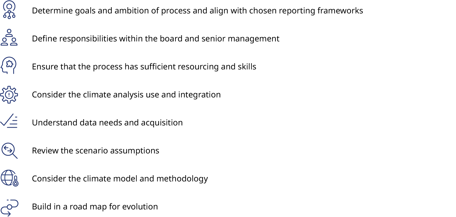 Organizations face important choices to ensure that their climate scenario analysis approach is fit for purpose, produces actionable information for business decision making, and lays the foundations for future activities and goals. By focusing on key elements of the exercise, boards can play a critical and constructive oversight role.