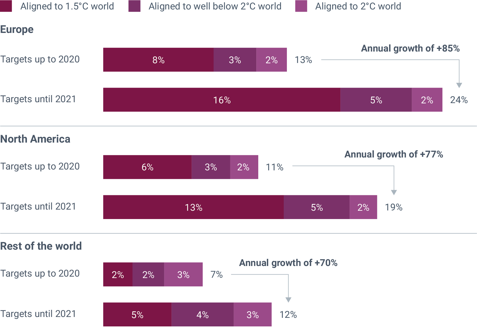 Acceleration in climate ambition: 1 in 4 European companies disclosing climate data to CDP now have approved science-based targets (SBTs) for reducing emissions, having grown 85% in a year
