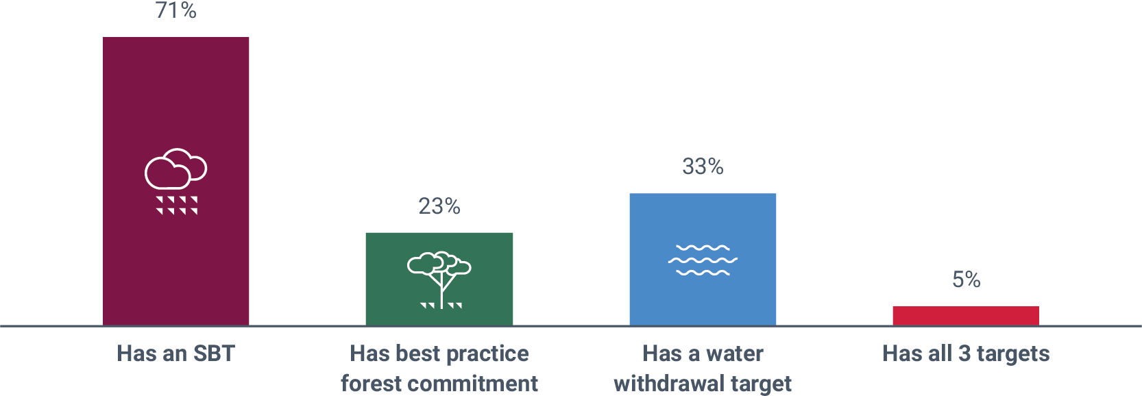 Only 5 percent of companies responding to CDP on climate change, forests, and water security surveys have set robust targets in all three areas