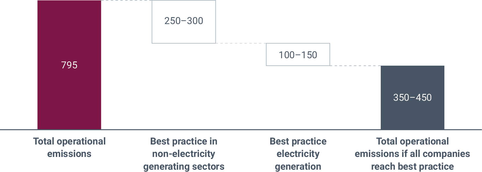 Total operational emissions could be cut in half if all companies caught up with the leaders in each sector