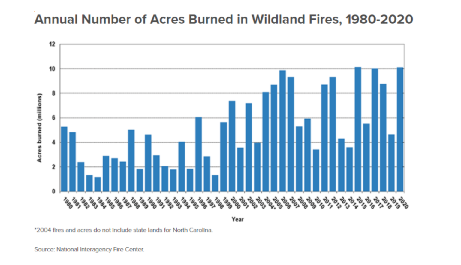 Other important factors such as population growth on the wildland-urban interface and insufficient or inappropriate management of state, federal and privately owned forests exacerbate the increasing risk.